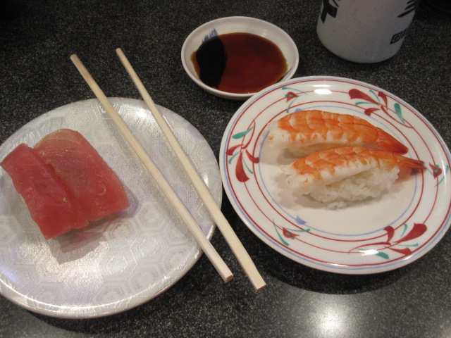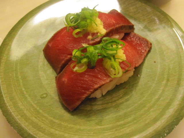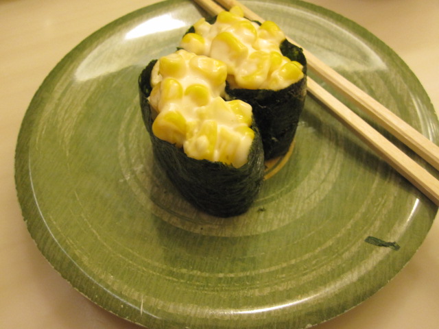 31.回転寿司で食べたコーンの寿司と牛肉の寿司