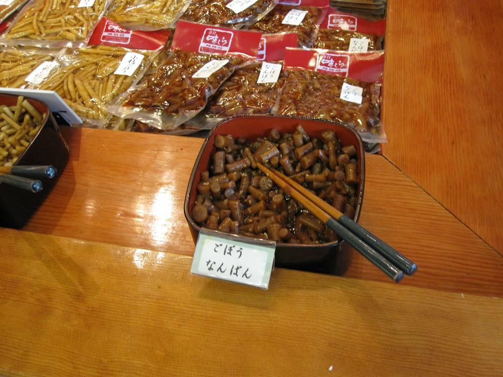 9.日本では漬物が人気ですべて試食できた!箸で取って、そのまま口にはつけず、手に乗せて食べるんだ。