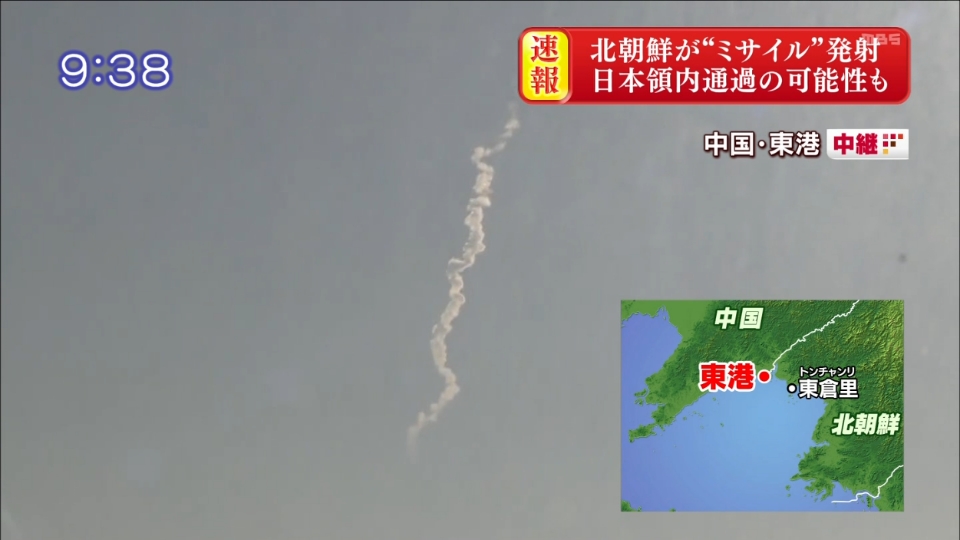 日本のメディア報道によればミサイルは日本の領空を通過