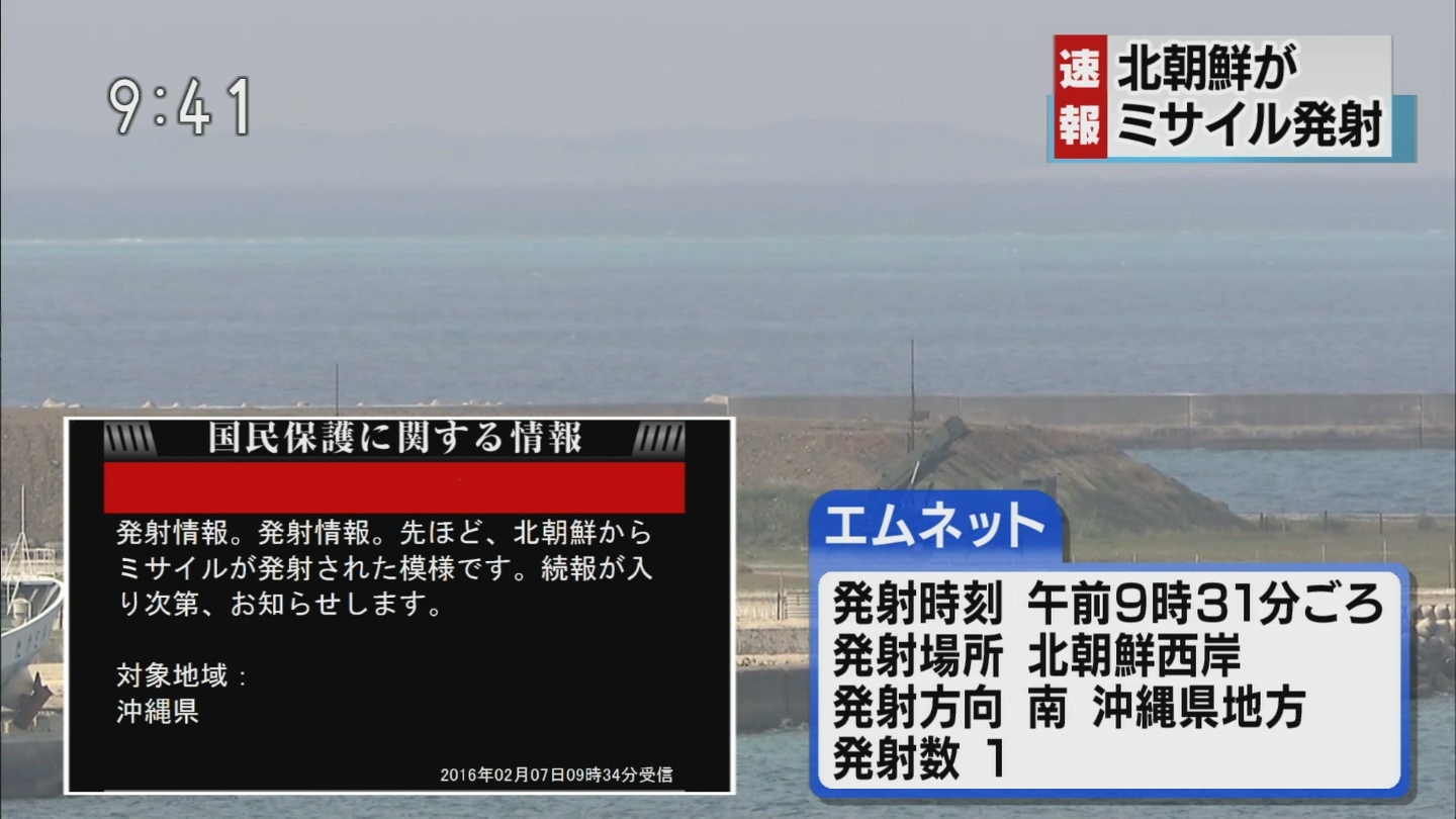 北朝鮮が長距離弾道ミサイルを発射したとのこと