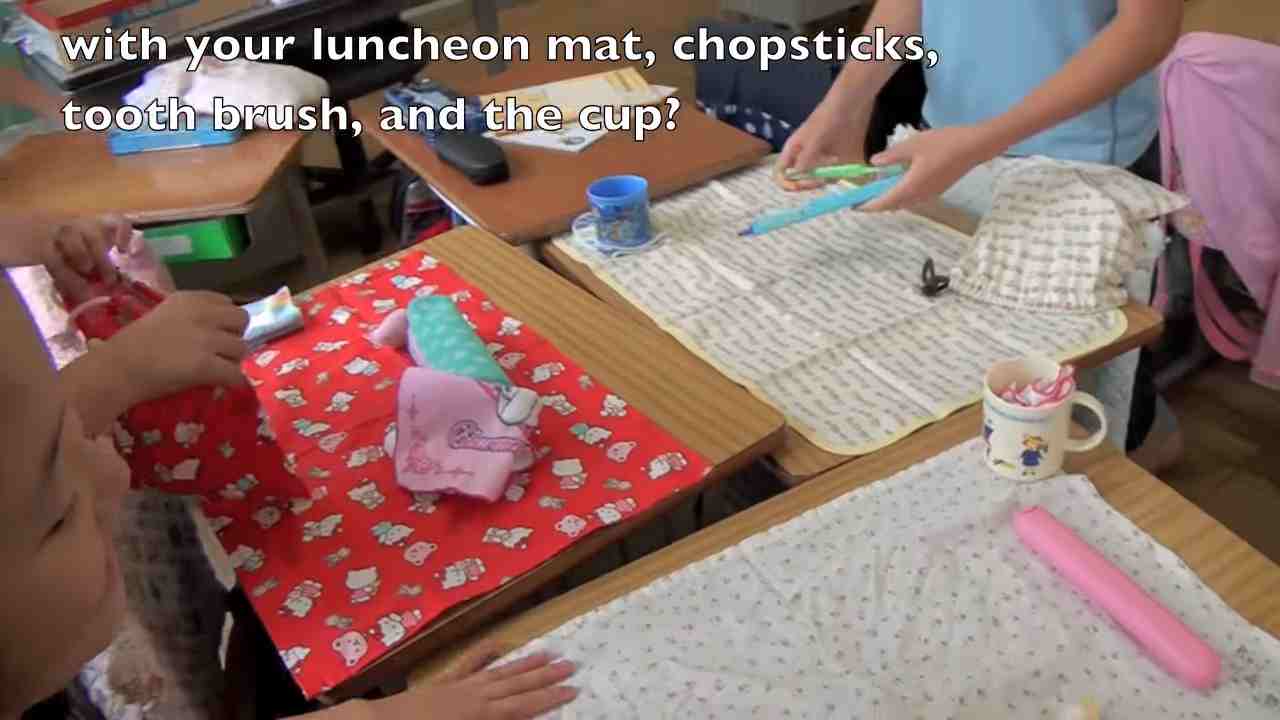 ・机の上にはランチョンマット・箸・歯磨きセットを用意