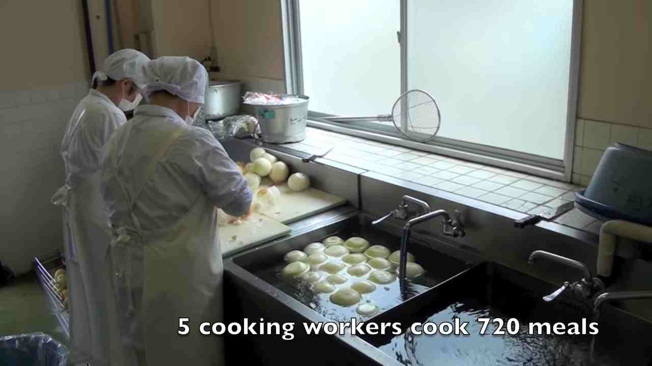 ・5人の給食のおばさんが720人分の給食を3時間以内に作りあげる