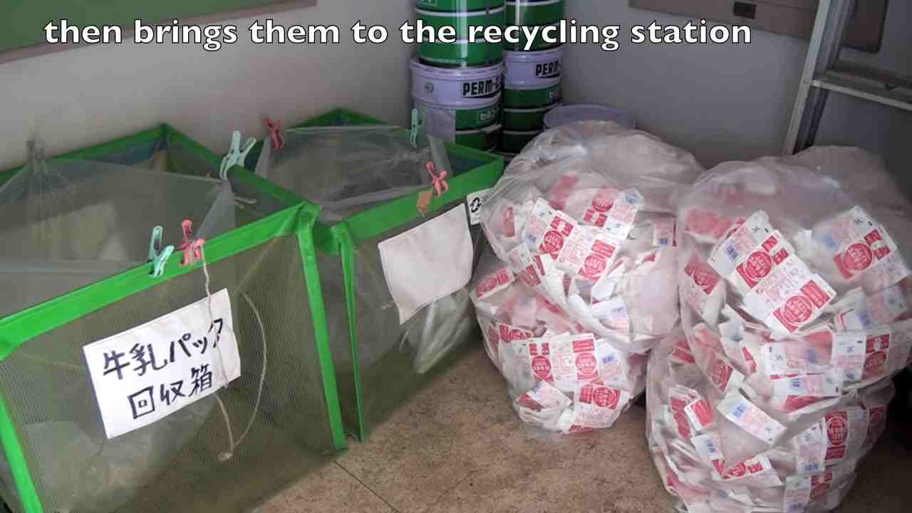 ・生徒は全員自分の牛乳パックを開いて、リサイクル用のコンテナに入れる