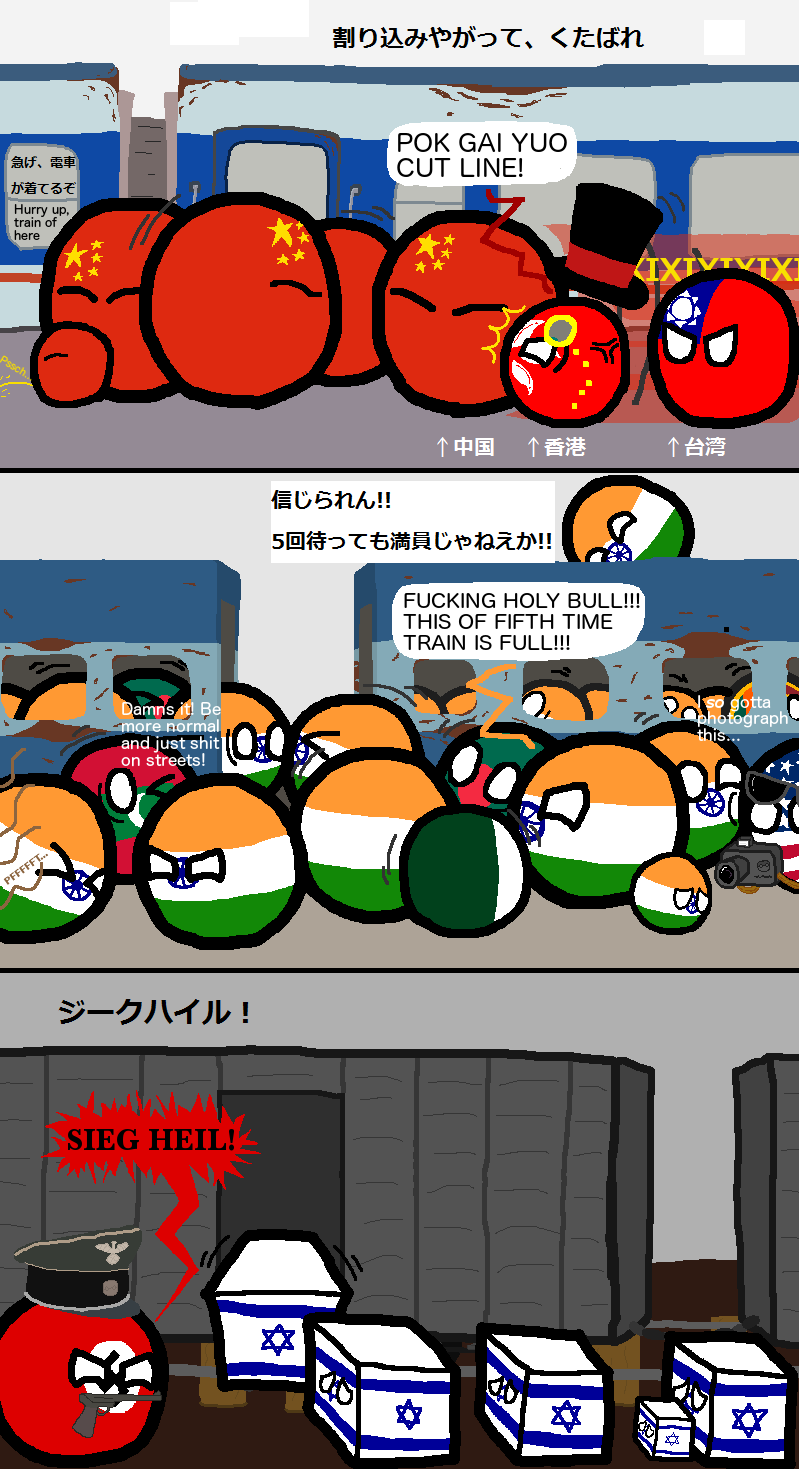 スレッド「電車の乗り方」より。日本・英国・中国・インド・ドイツでの電車の乗り方を描いたポーランドボールコミック(国旗擬球化マンガ)が話題を集めていたので反応とともにまとめました。