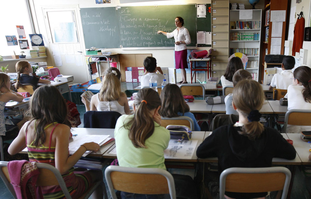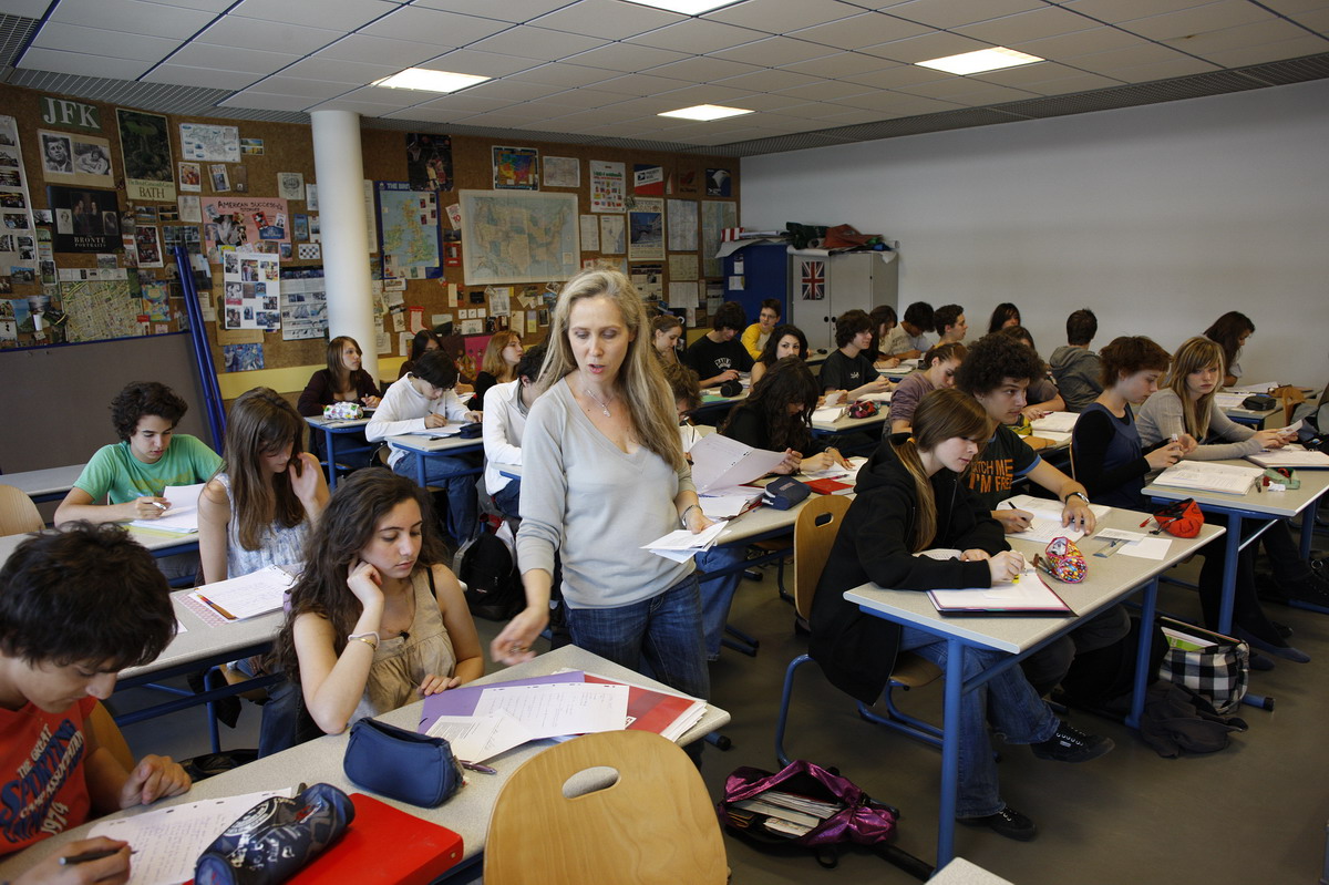 日本の標準的な学校って、角刈りのデブががり勉を授業中蹴っ飛ばしてカラフルな頭が足投げ出してマンガ読んでて半分の子は寝てて10分の1の席が空席(登校拒否)で女の先生が泣いてて授業大崩壊が現実だぞ