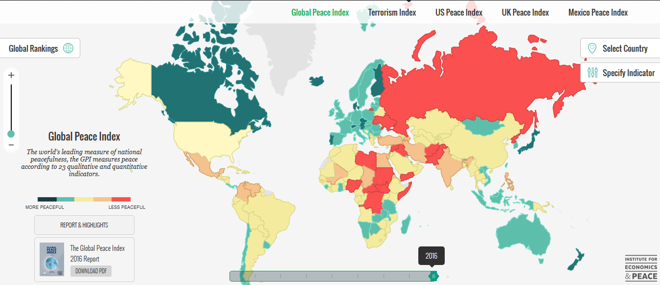 上の画像は2016年の世界平和度指数だ(元データ)