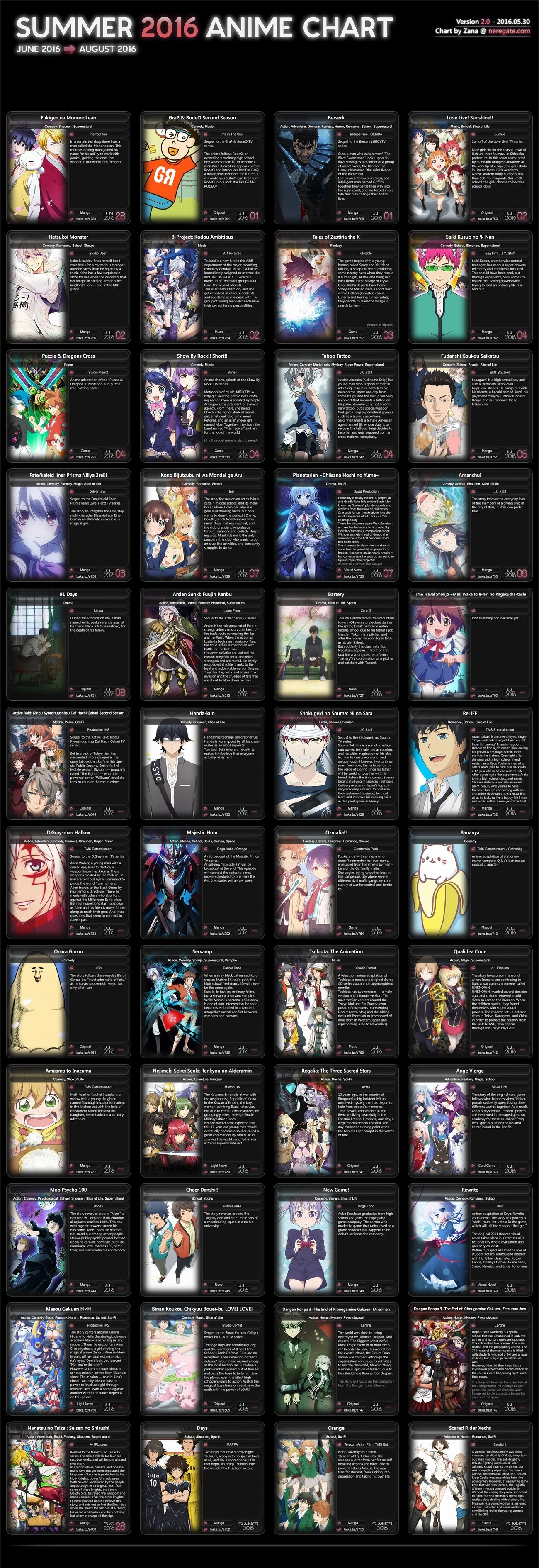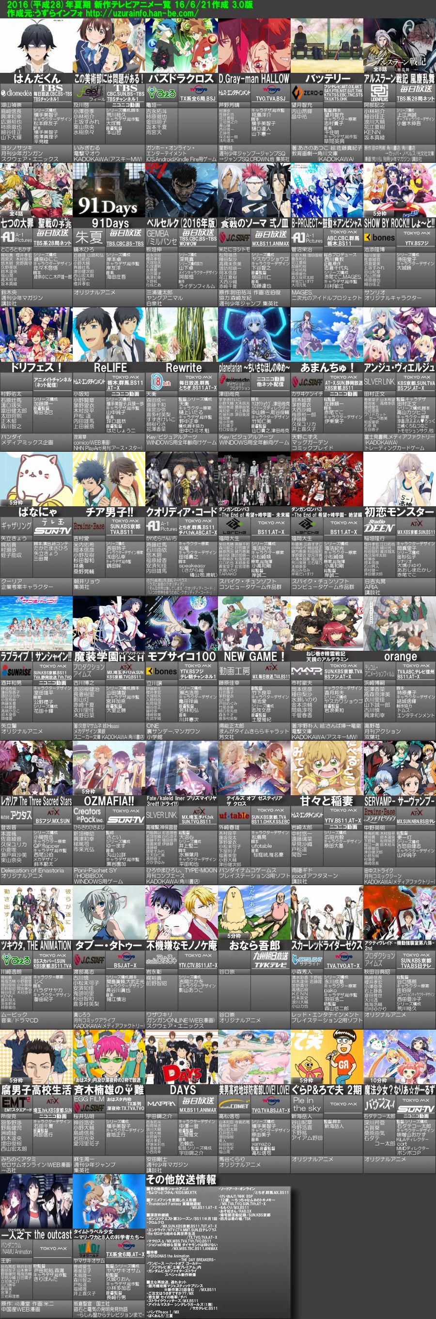 ※日本語版:2016年夏アニメ一覧Ver.3(うずらインフォ様より)