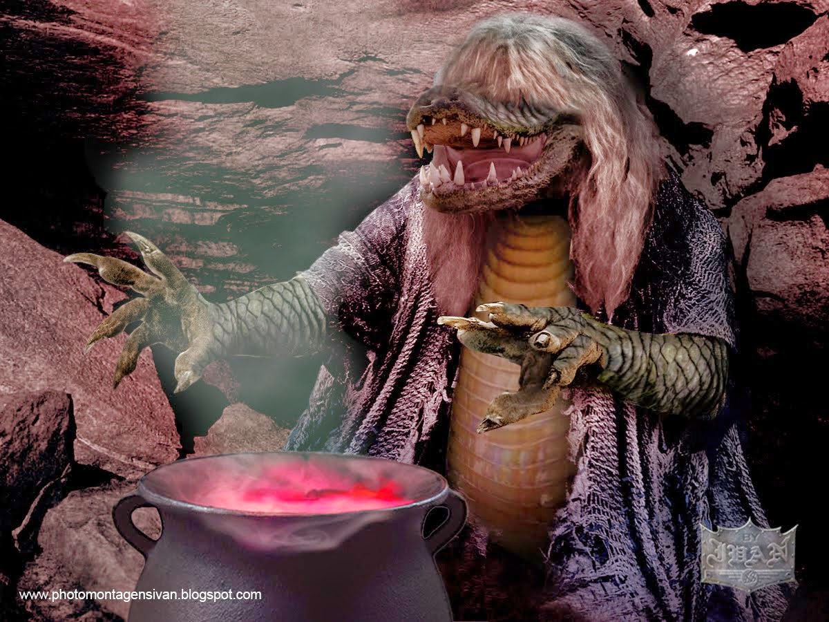 水辺の近くに生息していて獲物を尻尾で捕捉し、水の中に人間を引きずり込む