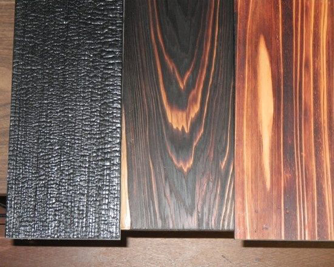 普通の黒っぽい杉になるよ。うちの地方では「焼き板」と読んでる。