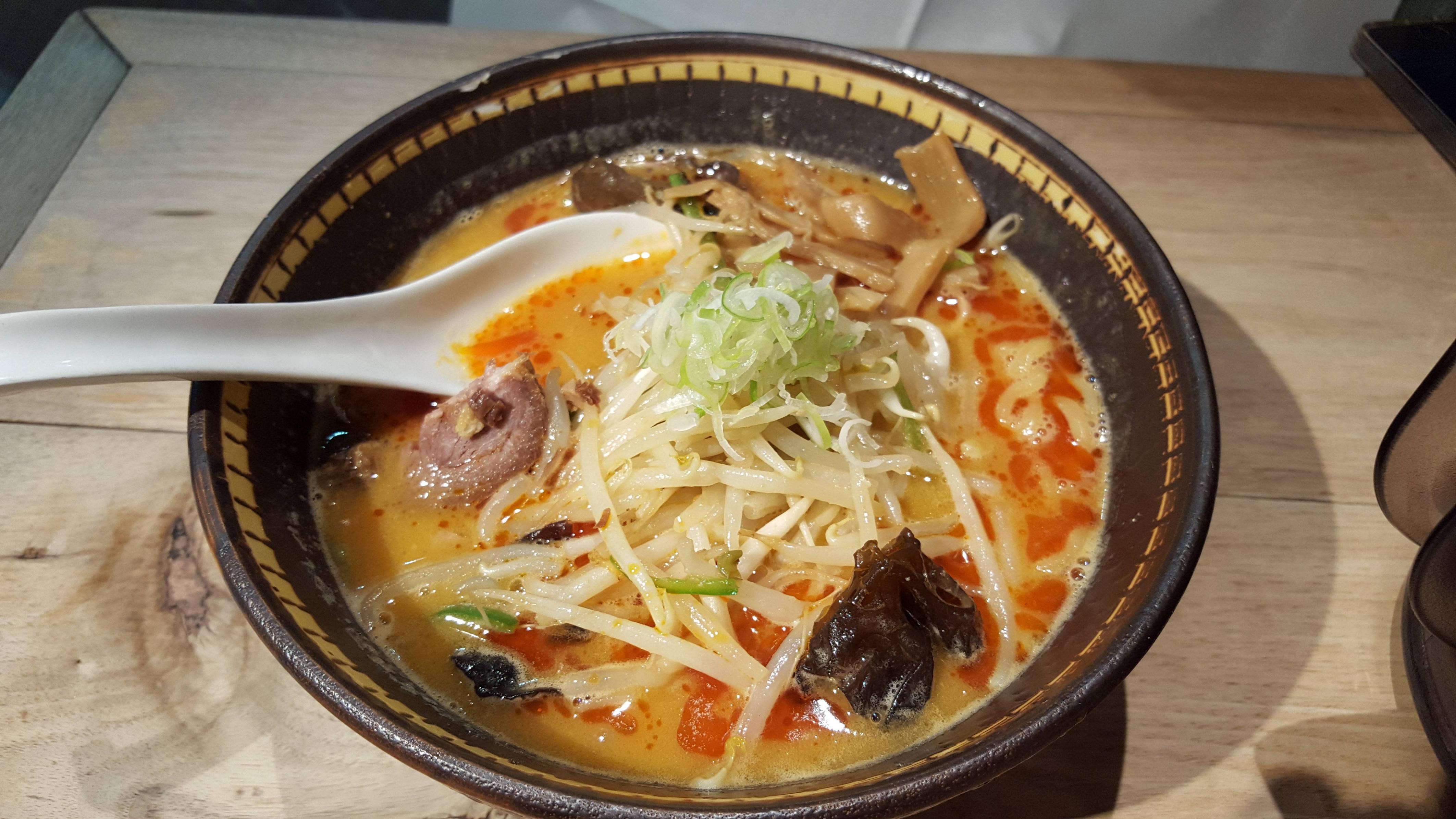 これは実際には豚骨ベースのラーメンで味噌じゃないよ