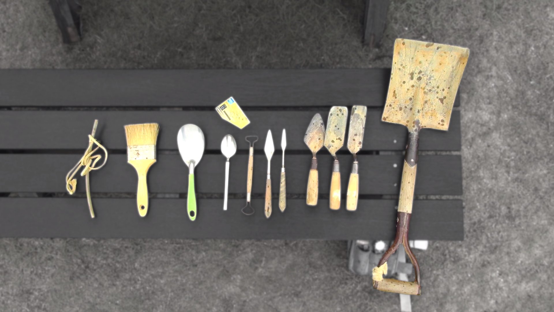 道具はストロー、ブラシ、ヘラ、ワイヤーループ、カレースプーン、誰でもすぐに買えそうですね