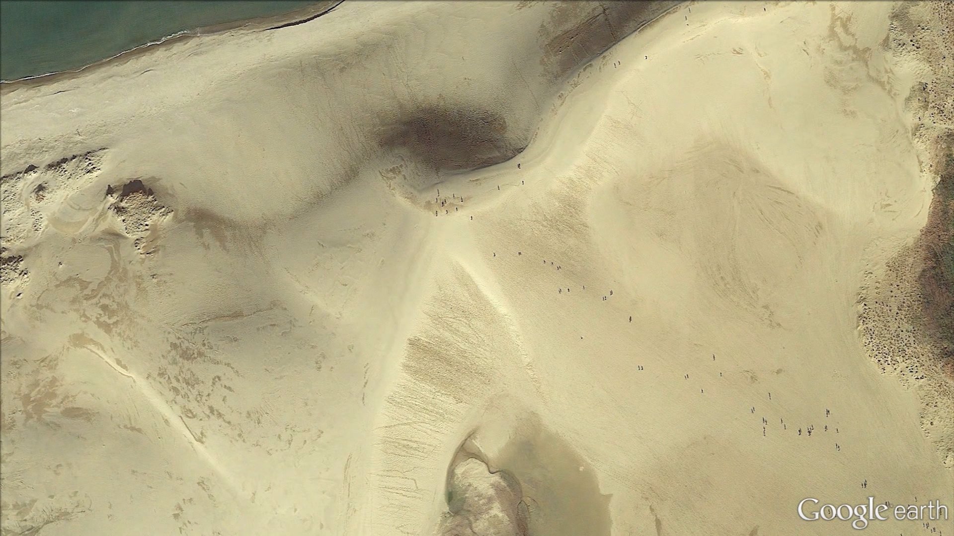 衛星写真から見える一つ一つの点は砂丘を登ろうとする観光客なんです