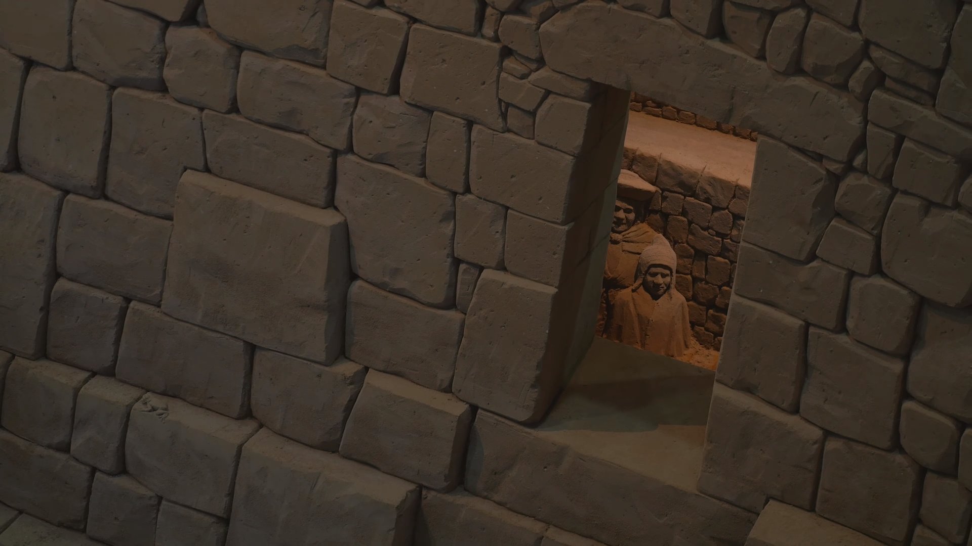 マチュピチュの彫刻は上の階からしか全貌が見えないですが