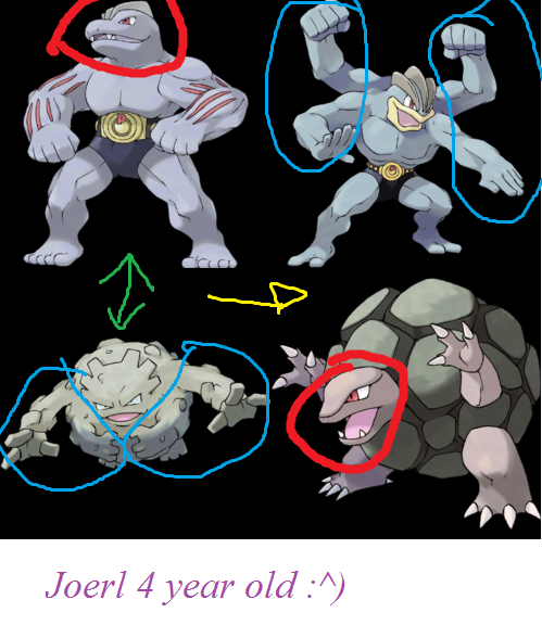 記事内だとカイリキーはゴローニャの腕4本という特徴を受け継ぎゴローニャはゴーリキーの顔の特徴を受け継いだという話