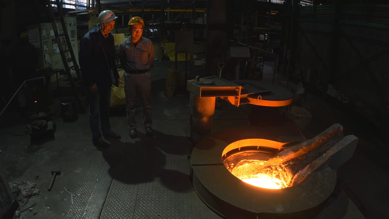 マンホールの製造現場はどんな感じなのか長島鋳物の工場で見学させてもらえることに