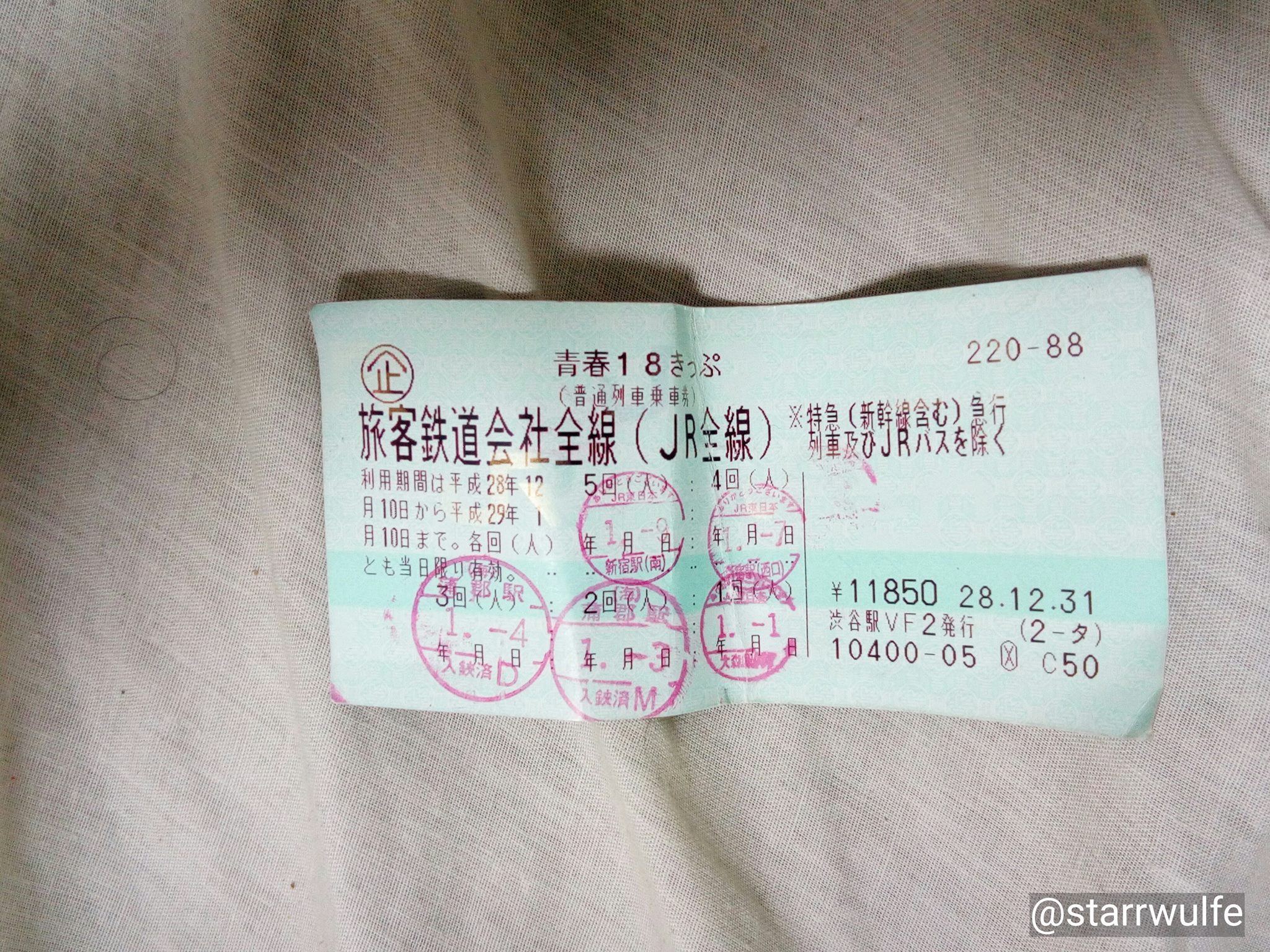 東京と名古屋に立ち寄ったので使ったのは合計3枚だったな