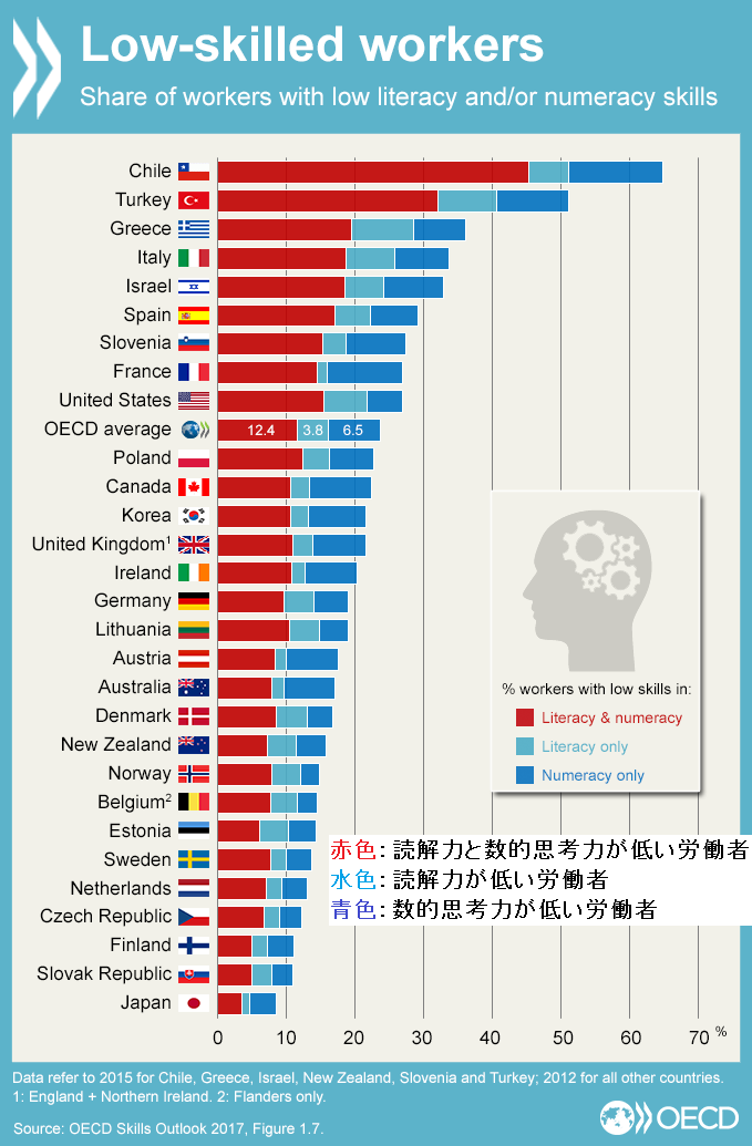 読み書きと数字に弱い労働者の割合だよ