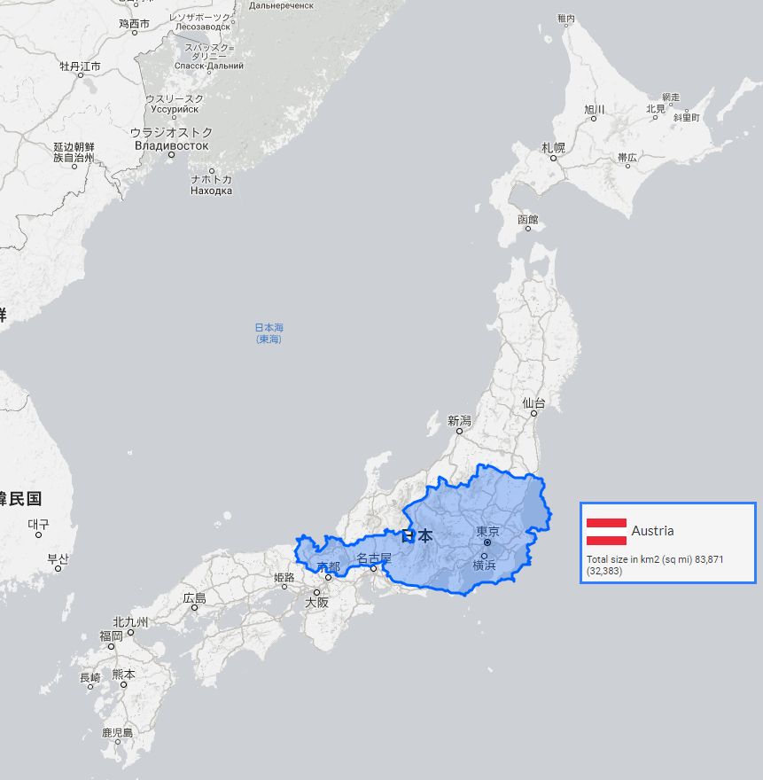 オーストリアは日本の面積の4分の1にあたるから