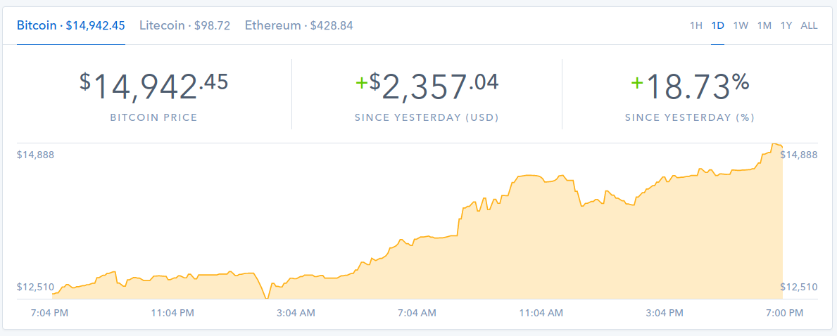 1ビットコイン1万4888ドル(約168万円)とかとんでもねーな