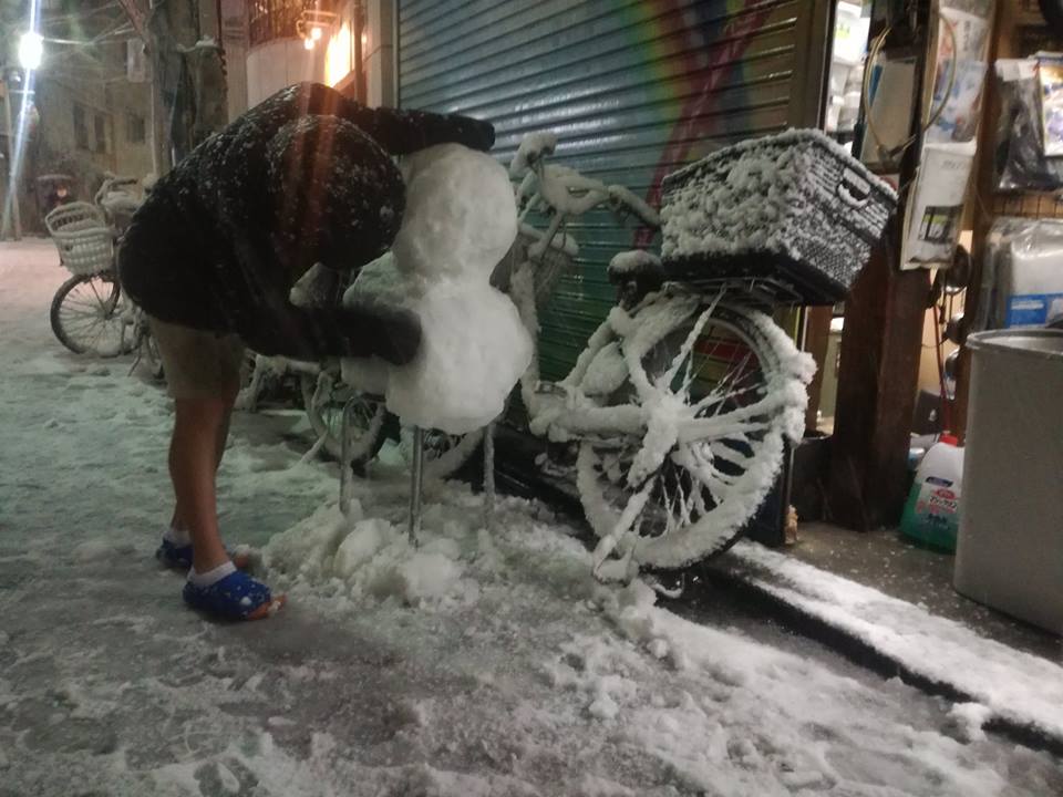 この東京の青年は半ズボンで雪だるまを作ってるぞ(撮影:Alexandra Hommaさん)
