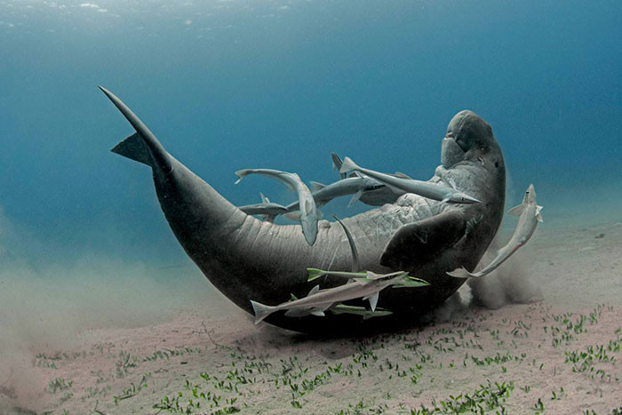 魚にくすぐられてるように見えるジュゴン