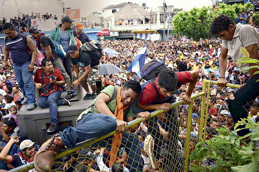 中米から米移住を目指す移民集団、メキシコ国境に中米ホンジュラスからアメリカへの移住を目指して北上している集団がメキシコ国境に差し掛かり、一部で混乱が起きています。ホンジュラスからの移民集団は19日、グアテマラを経由してメキシコ国境に到着し、国境にかかる橋は一時、この集団で埋め尽くされました。出発当時は160人ほどの集団が、4000人以上に膨れ上がっているということです。メキシコ政府は、パスポートとビザを持つか難民申請をする場合以外は強制送還するとして警戒を強めていますが、集団の一部は国境沿いのフェンスを破ったり川を渡ったりして、メキシコに入っています。アメリカのトランプ大統領はメキシコとの国境を封鎖するため軍を出動させる考えも示しており、ポンペオ国務長官は、メキシコ政府に集団がアメリカに到着する前に阻止するよう要請しています。(ニフティニュース)