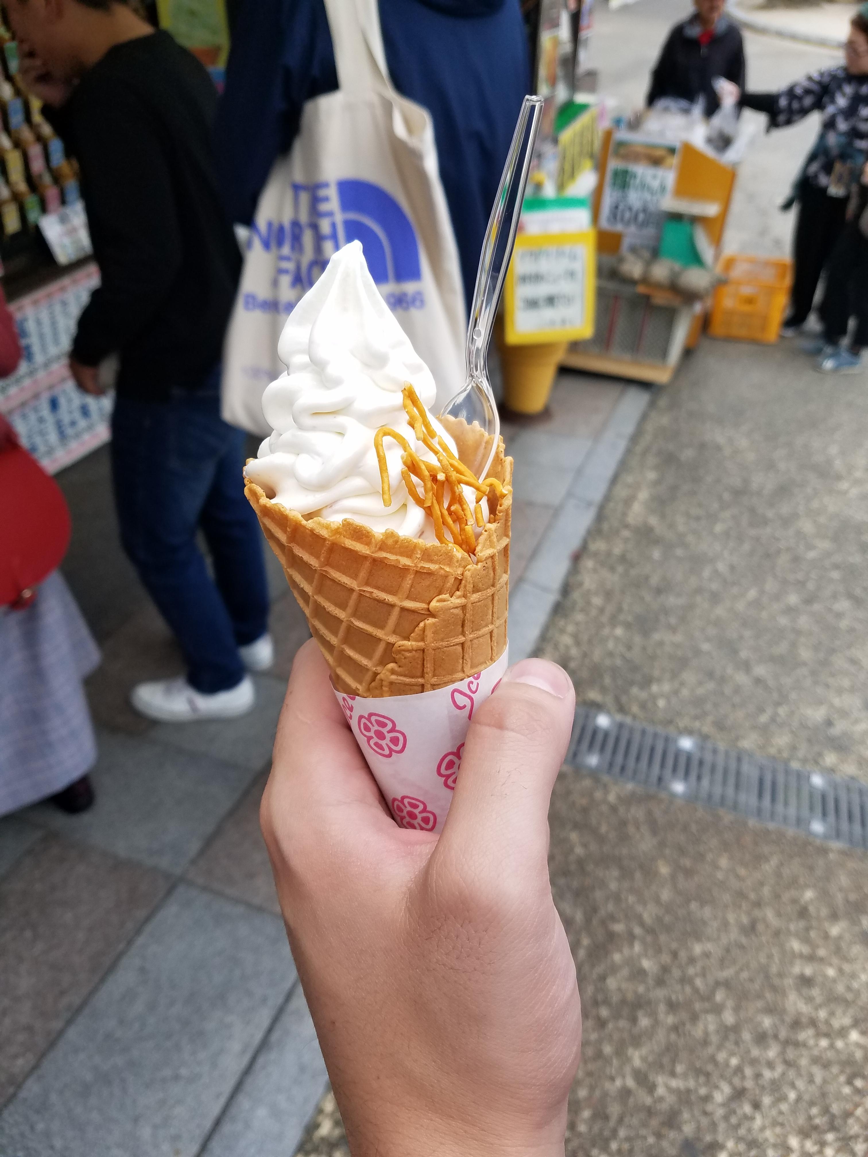 錦帯橋には100種類のアイスクリームを売ってる店があるので少し食べてみた