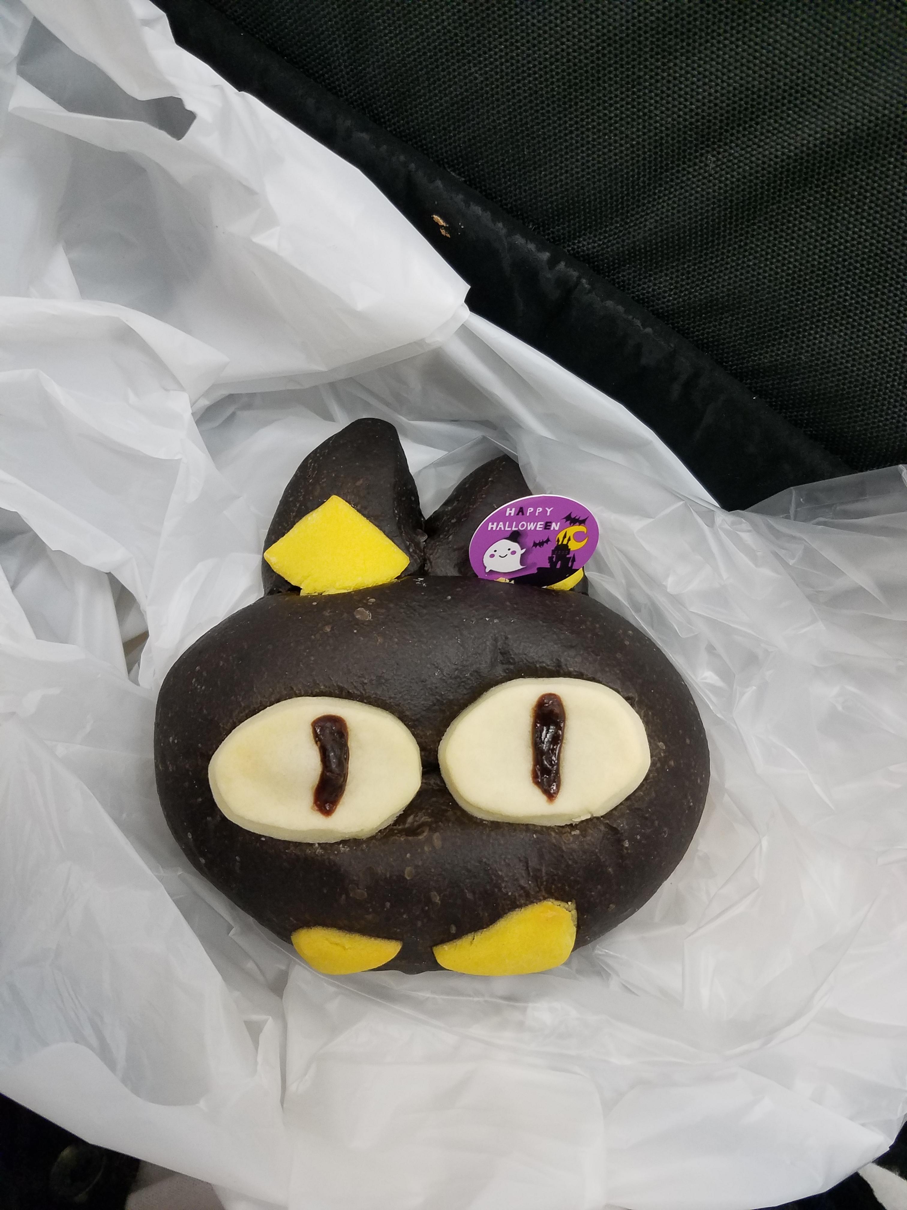 大阪駅のハロウィン仕様の菓子パン、この子の中にはチョコレートクリームが詰まってた