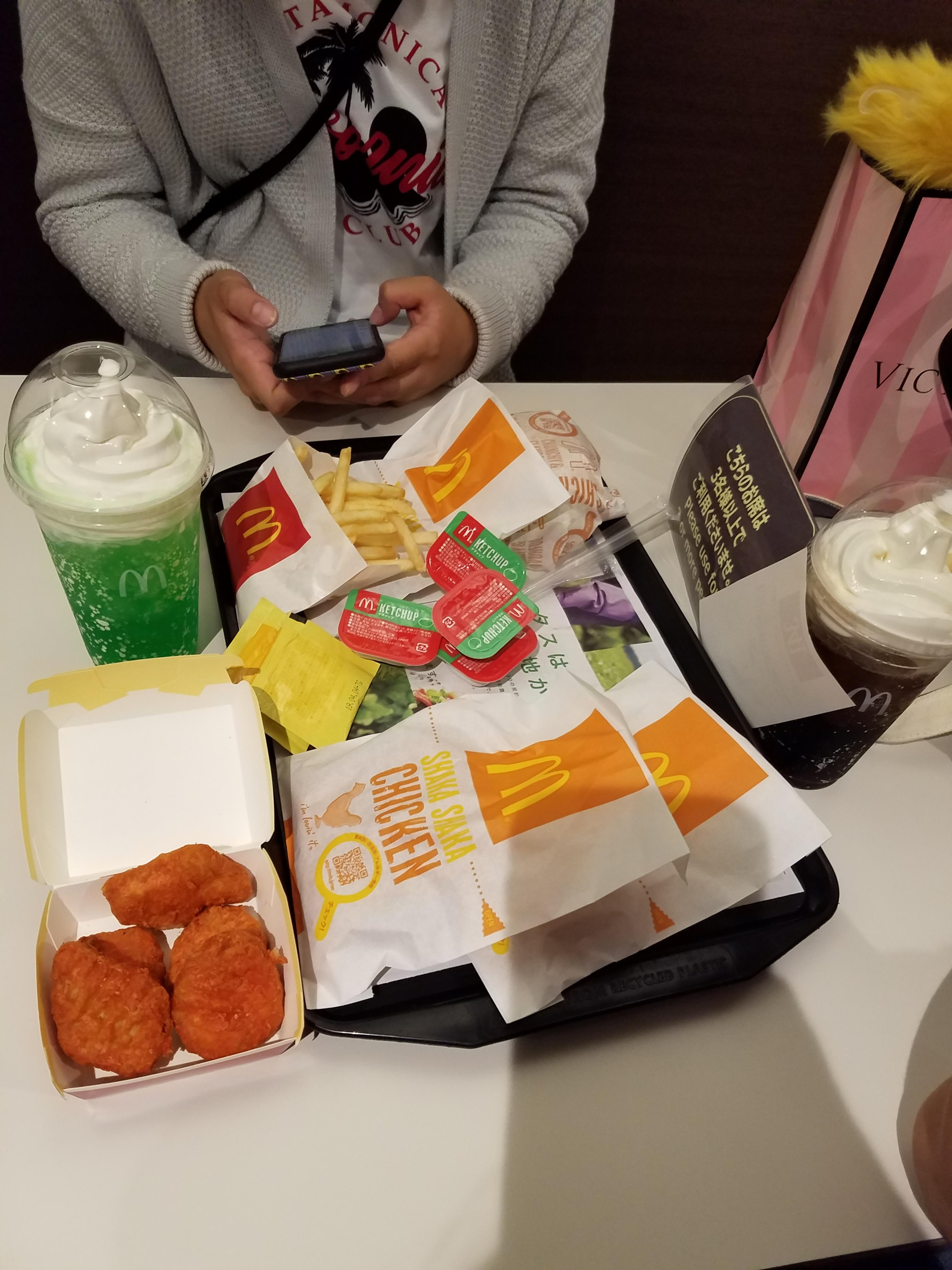 メニューは全然違っていて、スパイシーなチキンナゲットやメロンクリームソーダ、