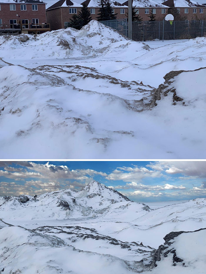 山脈のように見える雪(2枚目はフォトショップで背景を差し替えてみた)