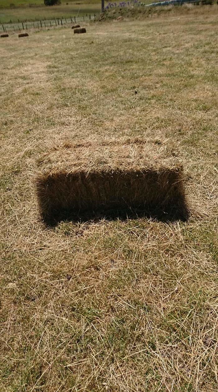 地面に穴が空いてるように見える干し草