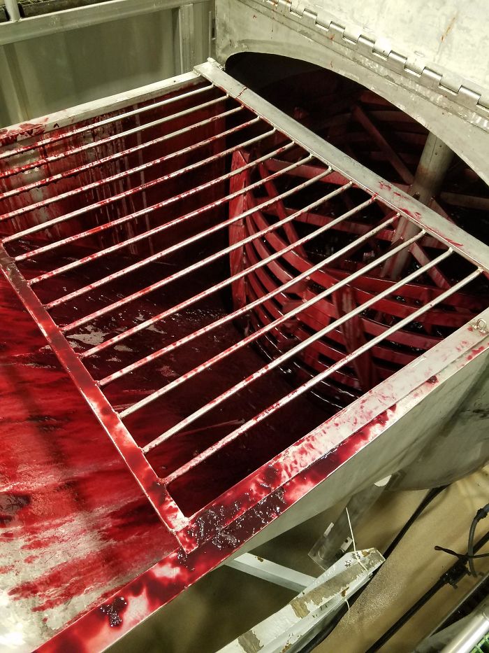 ホラー映画の小道具のようなブラッドオレンジの加工場