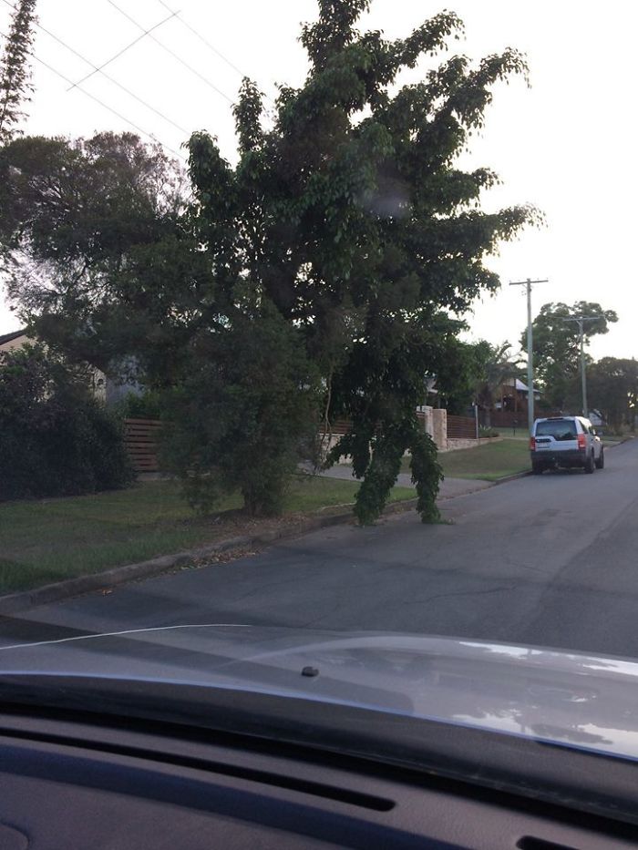 道路を横断しようと待っている人間に見える木