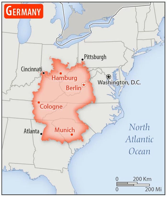 万国アノニマスさん ドイツは実際かなり小さいけど人口密度は高い