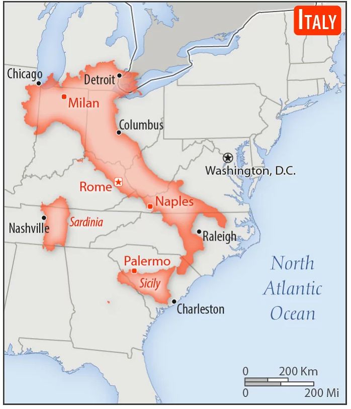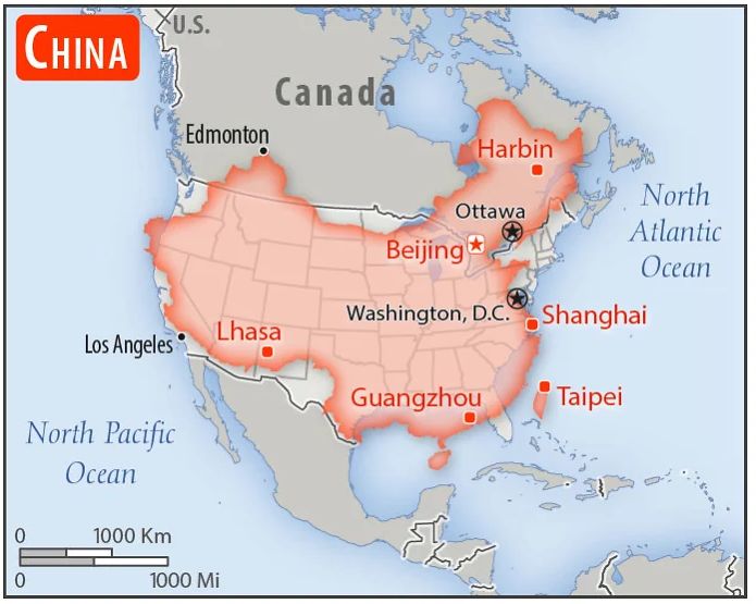 スレッド「色んな国を1/1スケールでアメリカと比較してみた」より。