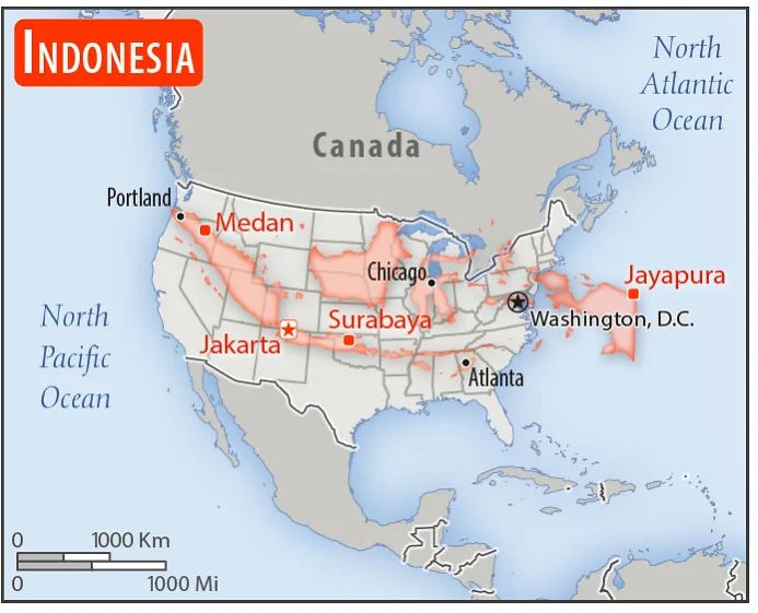 インドネシアを欧州に重ねた地図を見たことあるけど