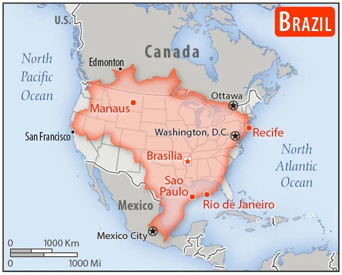 万国アノニマスさん ブラジルがこんなに巨大だとは知らなかった