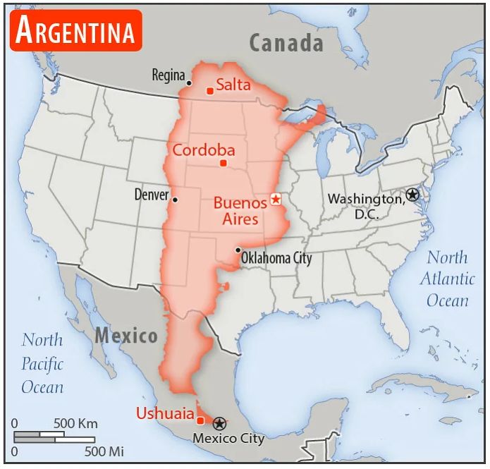 日本より大きく見えたから驚いて調べたら、国土面積は日本の7割ほどだった。
