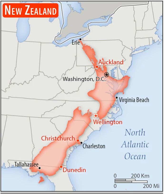 NZは日本から九州抜いた面積、見た目通りなのが面白いんだよ
