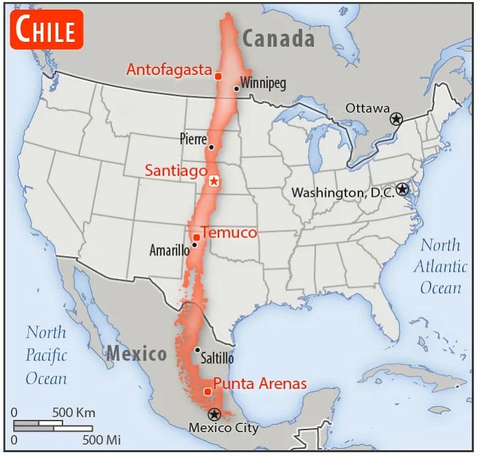 万国アノニマスさん チリ北部に住んでるけど南部の親戚に会いに行くだけでも長旅だよ…