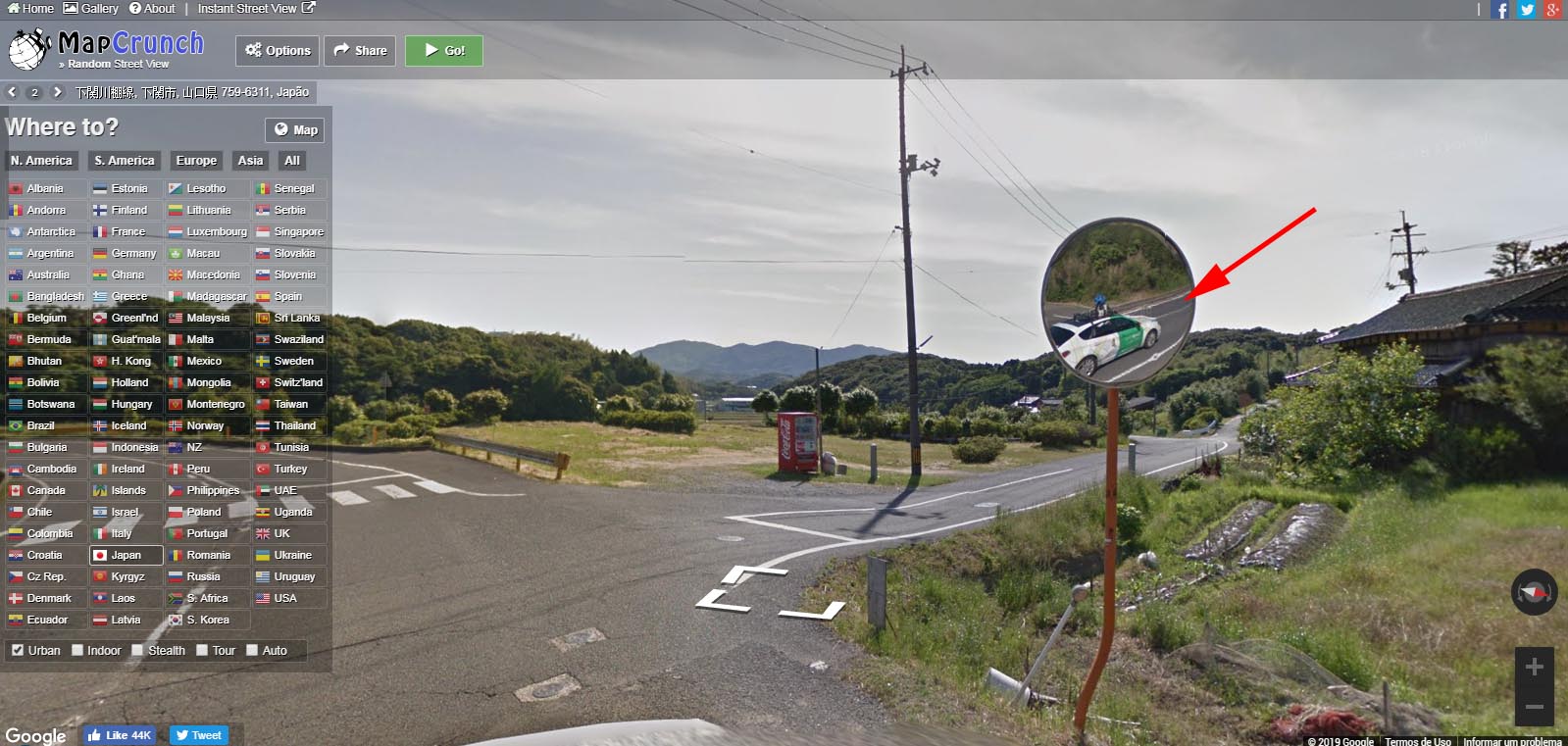 まずmapcrunch.com(ストリートビューをランダム表示するサイト)を開こう