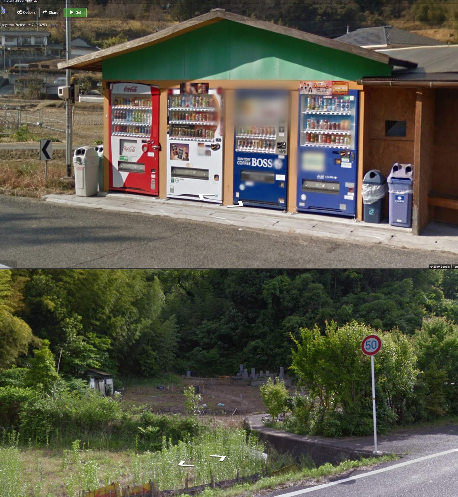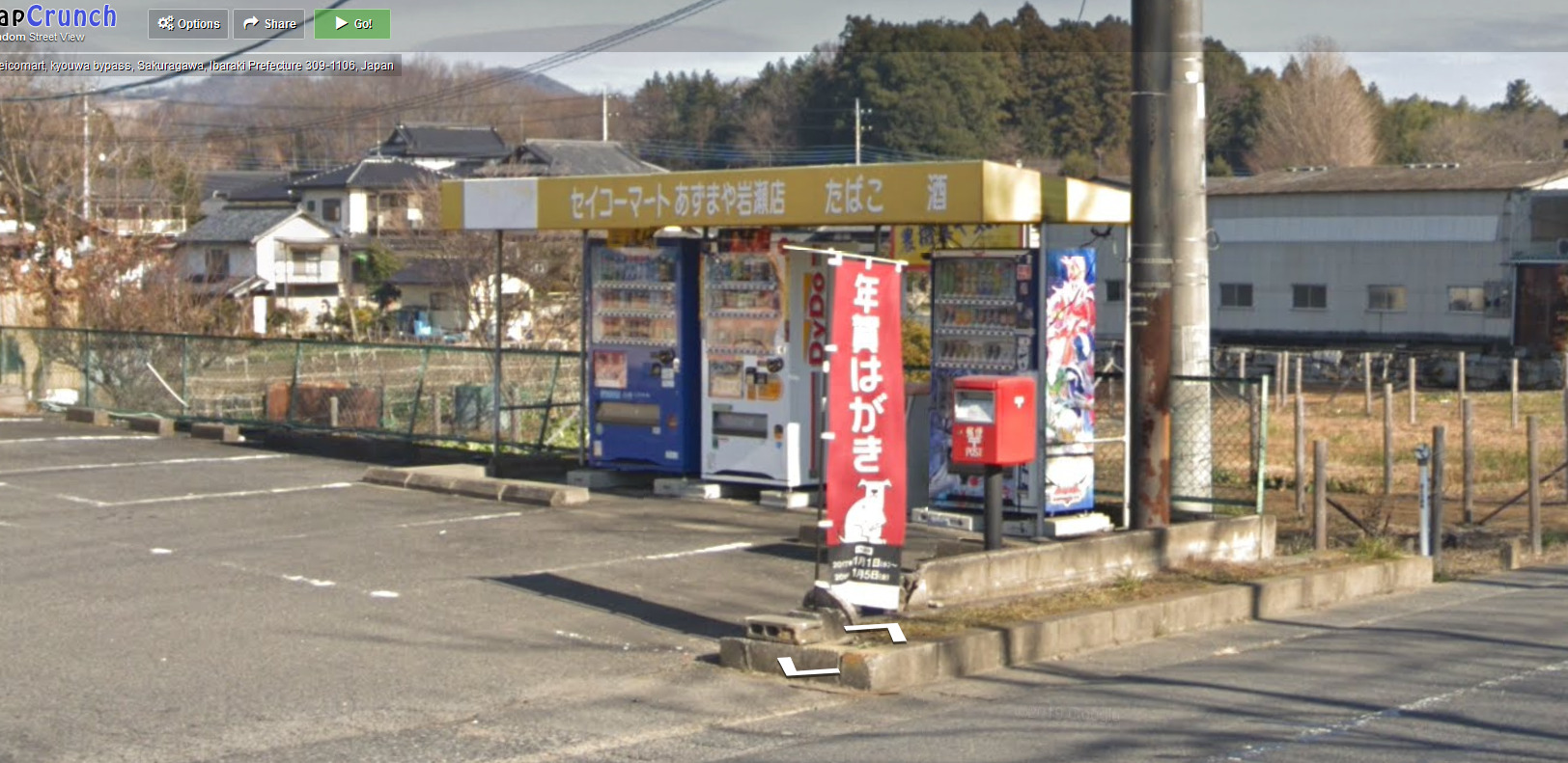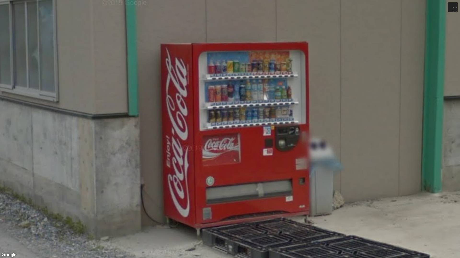 コカ・コーラの自販機とグーグルカーが映ってる!(笑)