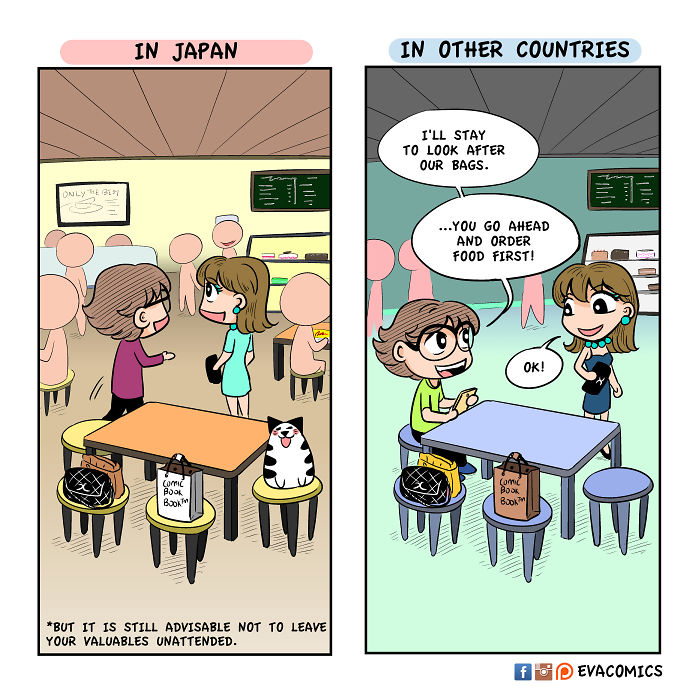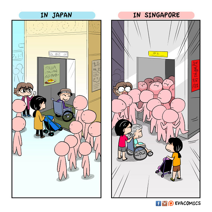 スレッド「日本と他の国の文化の違いを見せていく」より。2010年から2015年まで東京で留学したというシンガポール人のEvacomicsさんの体験談をまとめたイラストが海外で話題を集めていたので、Part1でまとめきれなかった画像と反応をまとめました。