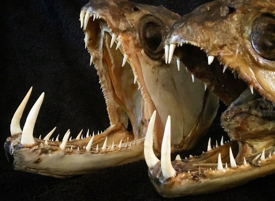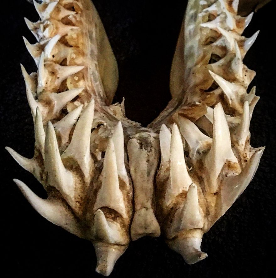 アミア・カルヴァの歯だらけの顎(北米の淡水魚) 生きた化石とも言われる