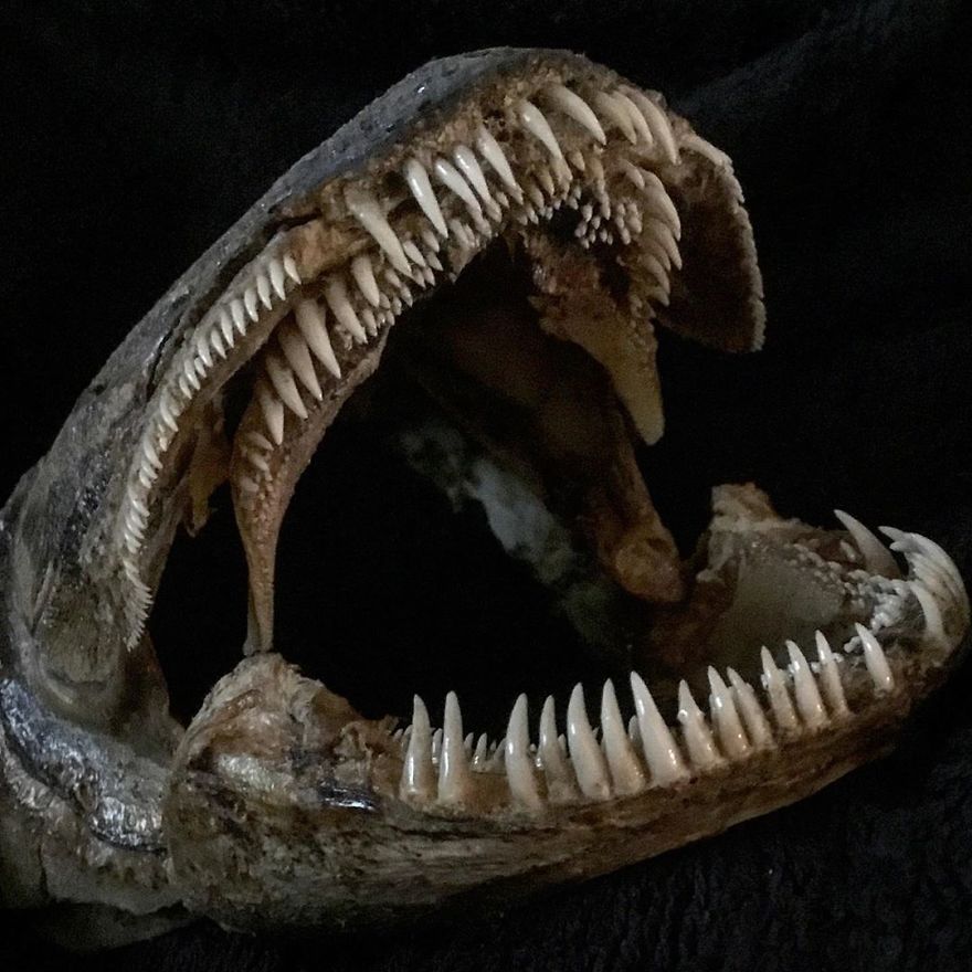 ミイラ化したリアルモンスターを25年間集め続けた俺だが今では博物館に売ったりしている これはウツボの頭蓋骨、本当に恐竜のように見える