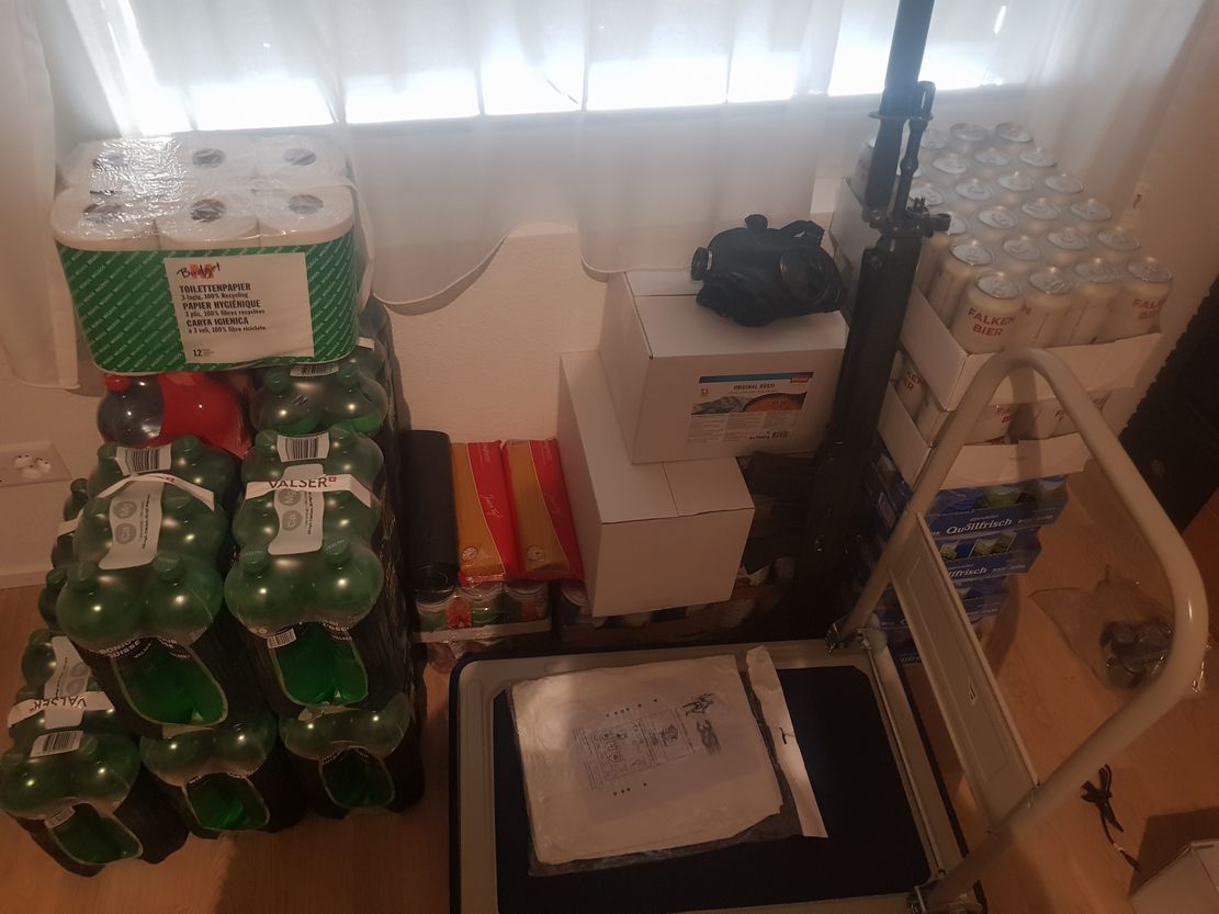 普段から備蓄という買いだめは趣味(癖)でやってる。水や茶は30箱、ティッシュやトイレットペーパーはそれぞれ30セット、缶詰インスタント菓子有りと有らゆる物が地下に保存されてるから一か月位籠っても平気かも。