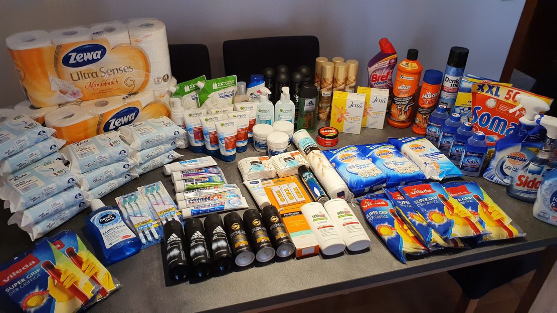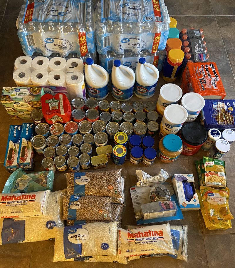 人間2人の2週間分の食料と飲料、衛生用品、体調悪くなった時の風邪薬等々