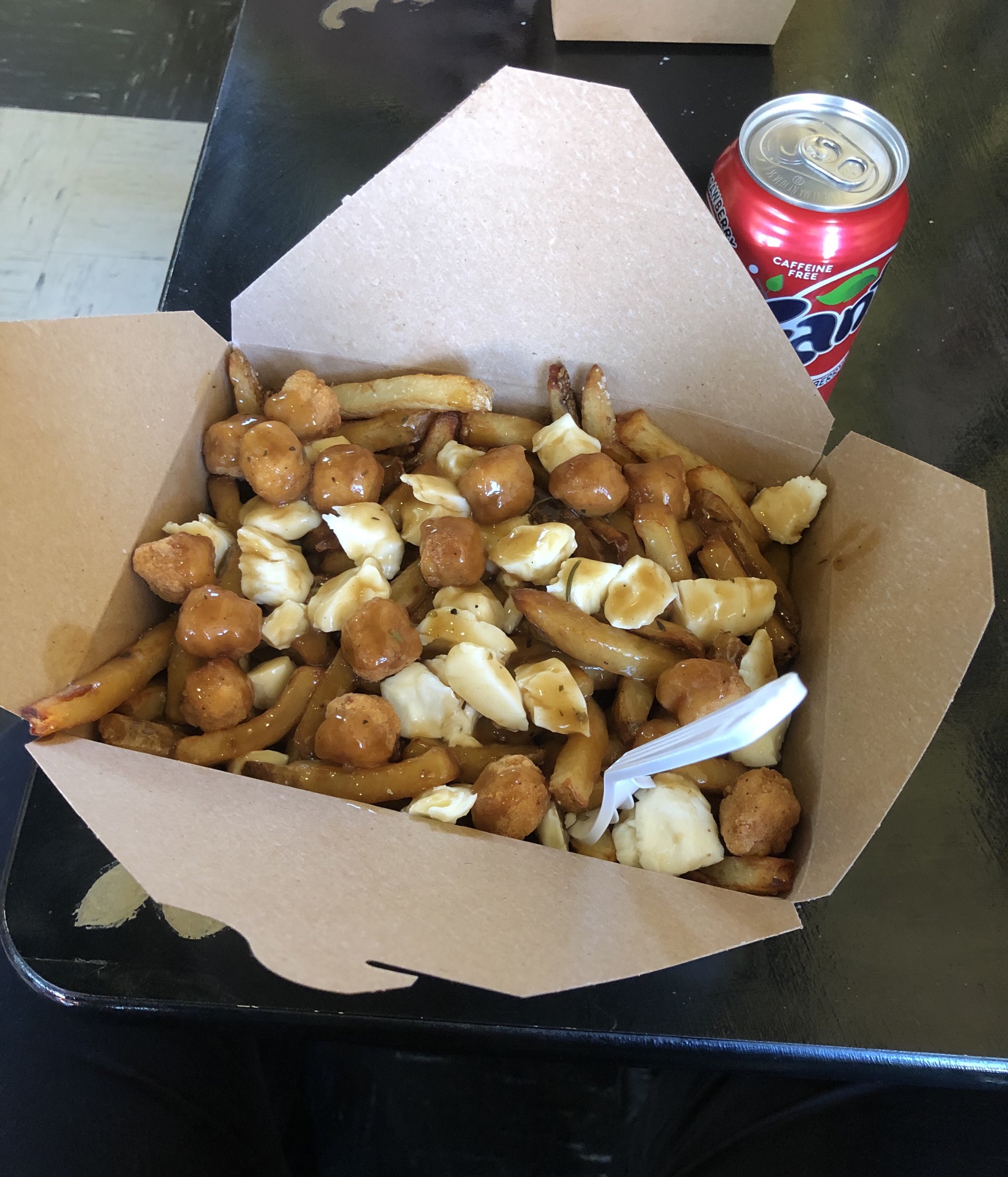 なんやろ?定番の豆と肉といっしょにソースぶっかけてるけど