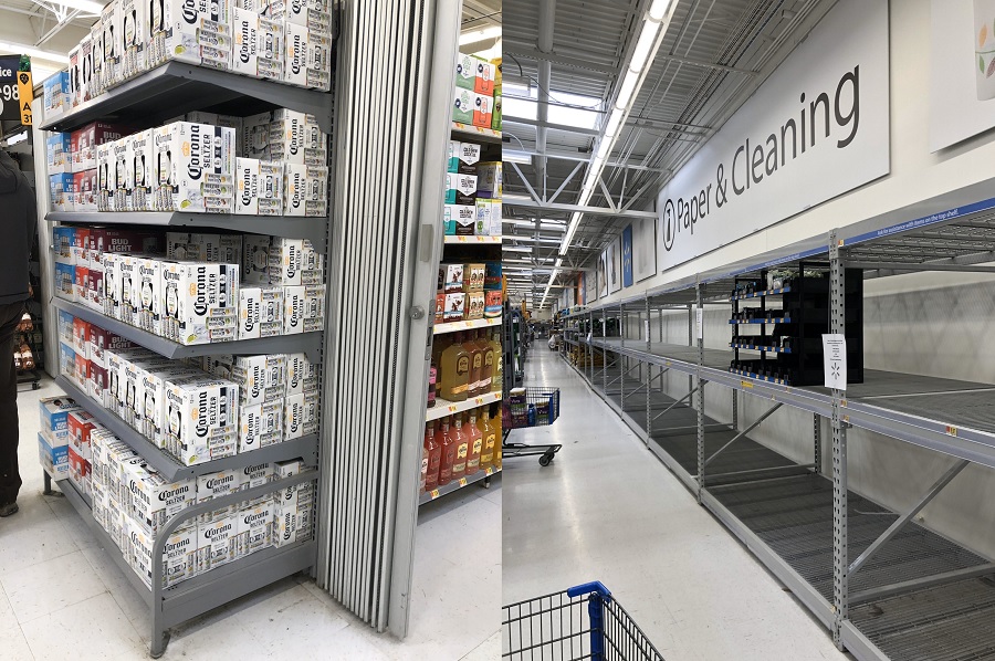 みんな買いだめしまくっててウォルマートのトイレットペーパーの棚は空だが