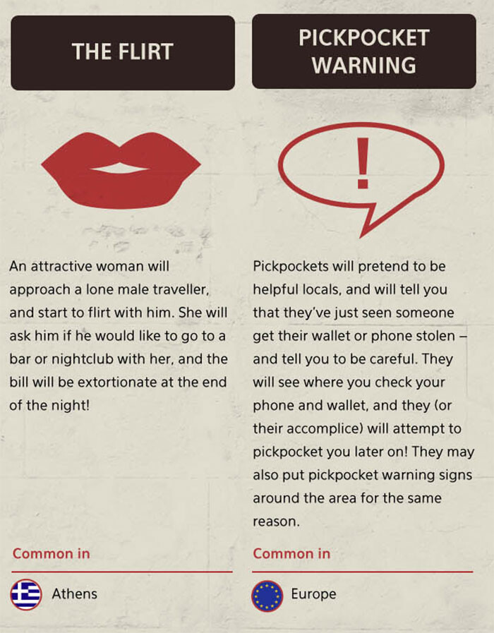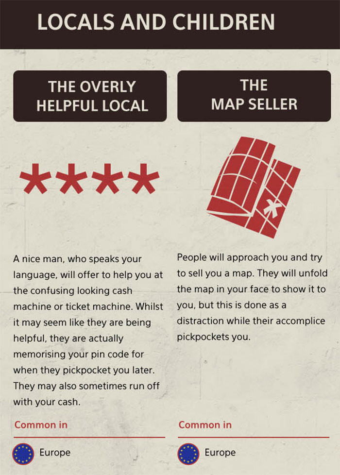 ヨーロッパ中で観光客を騙す詐欺を見つけられるよ